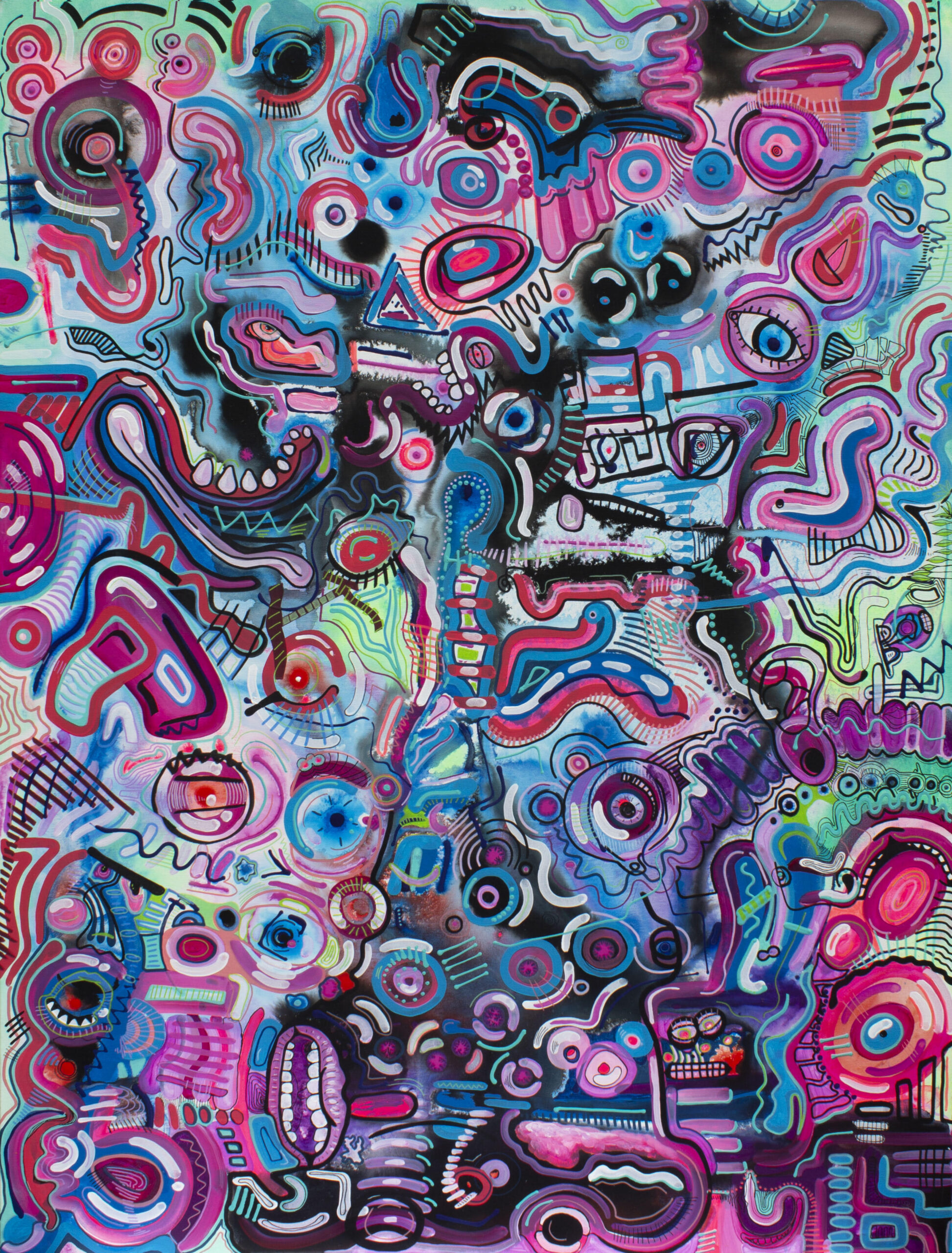 As my thoughts move a mile a minute, so does my paintbrush. By utilising my ADHD within my process, I am able to capture emotion and mindset with layers and hidden imagery.