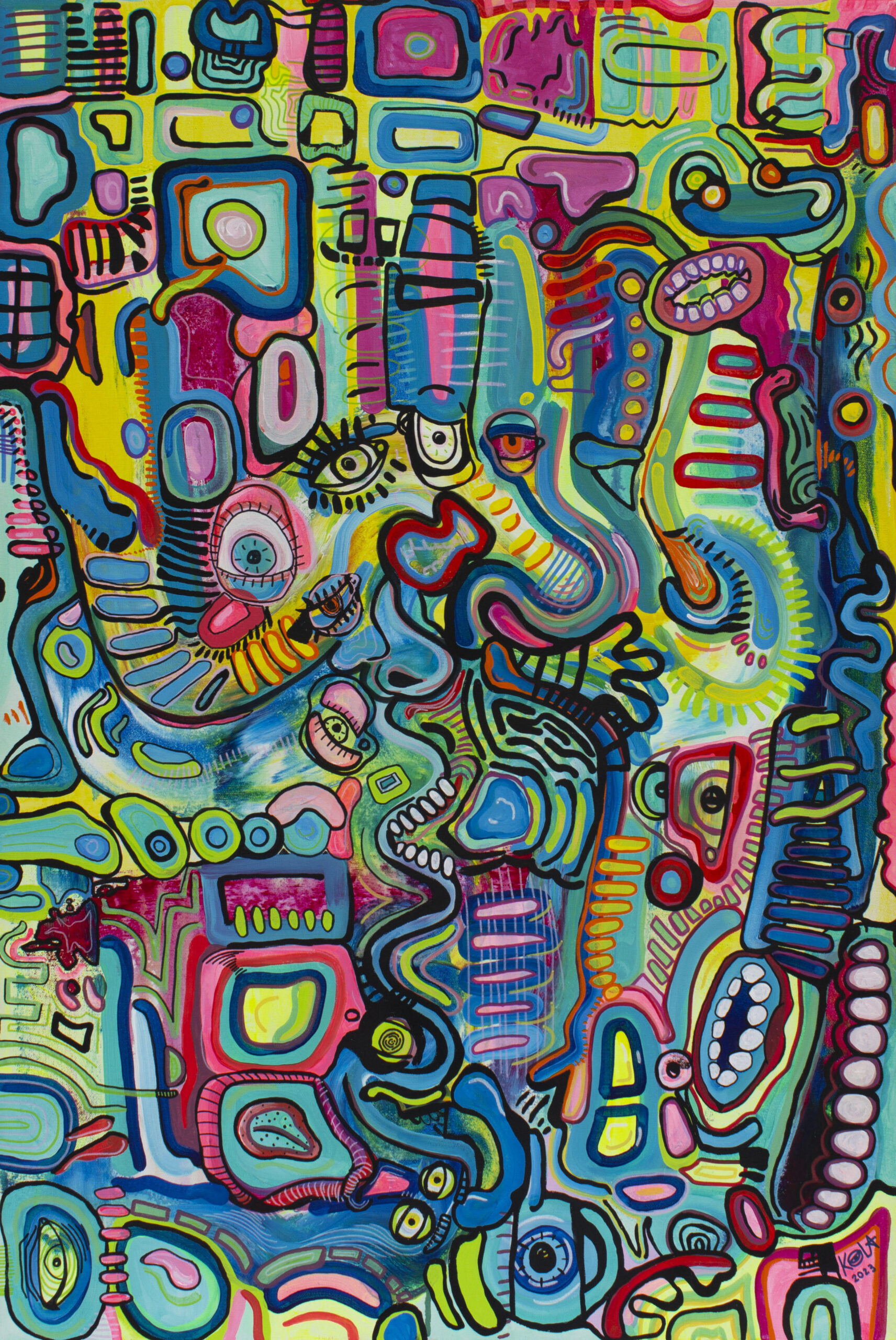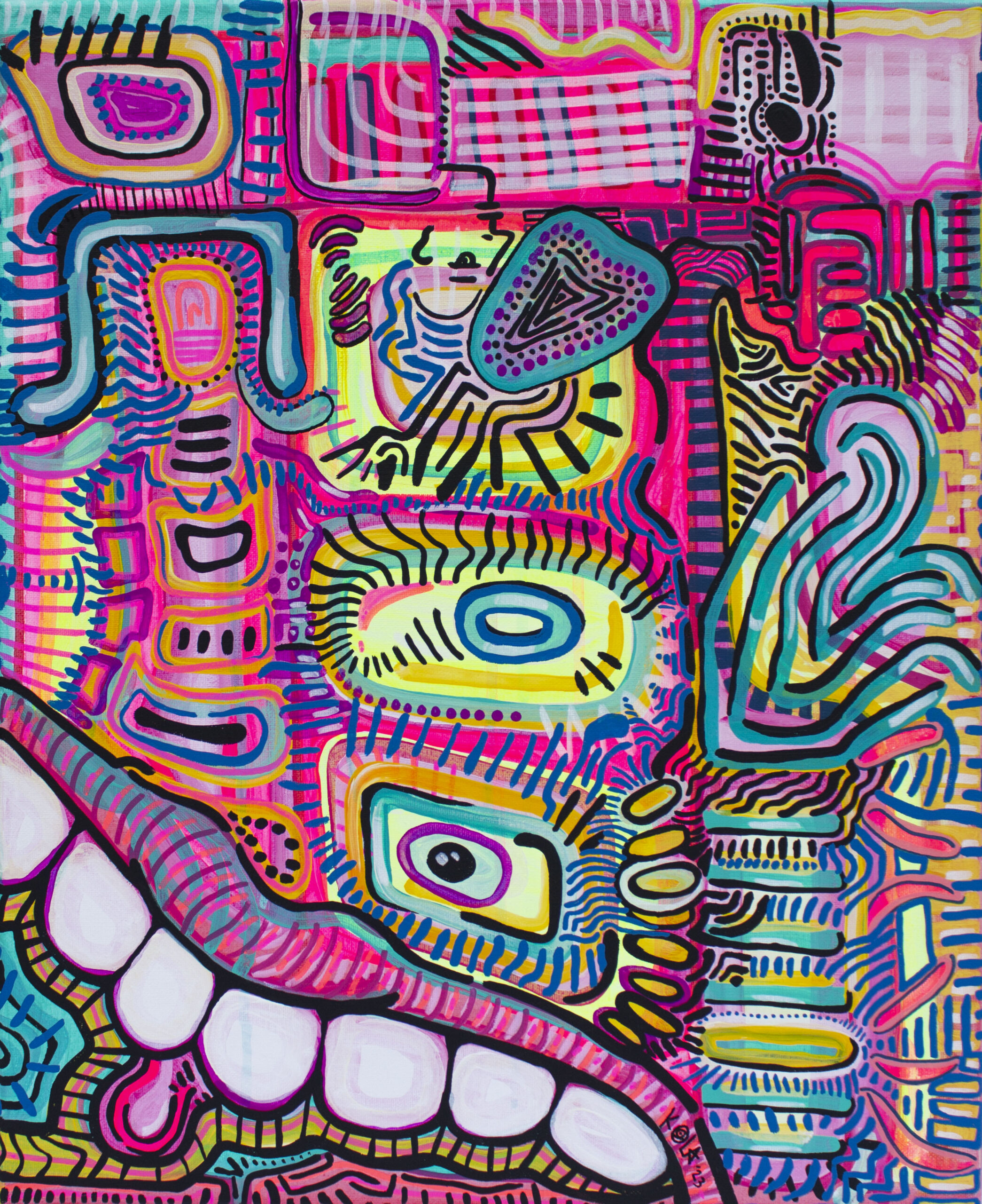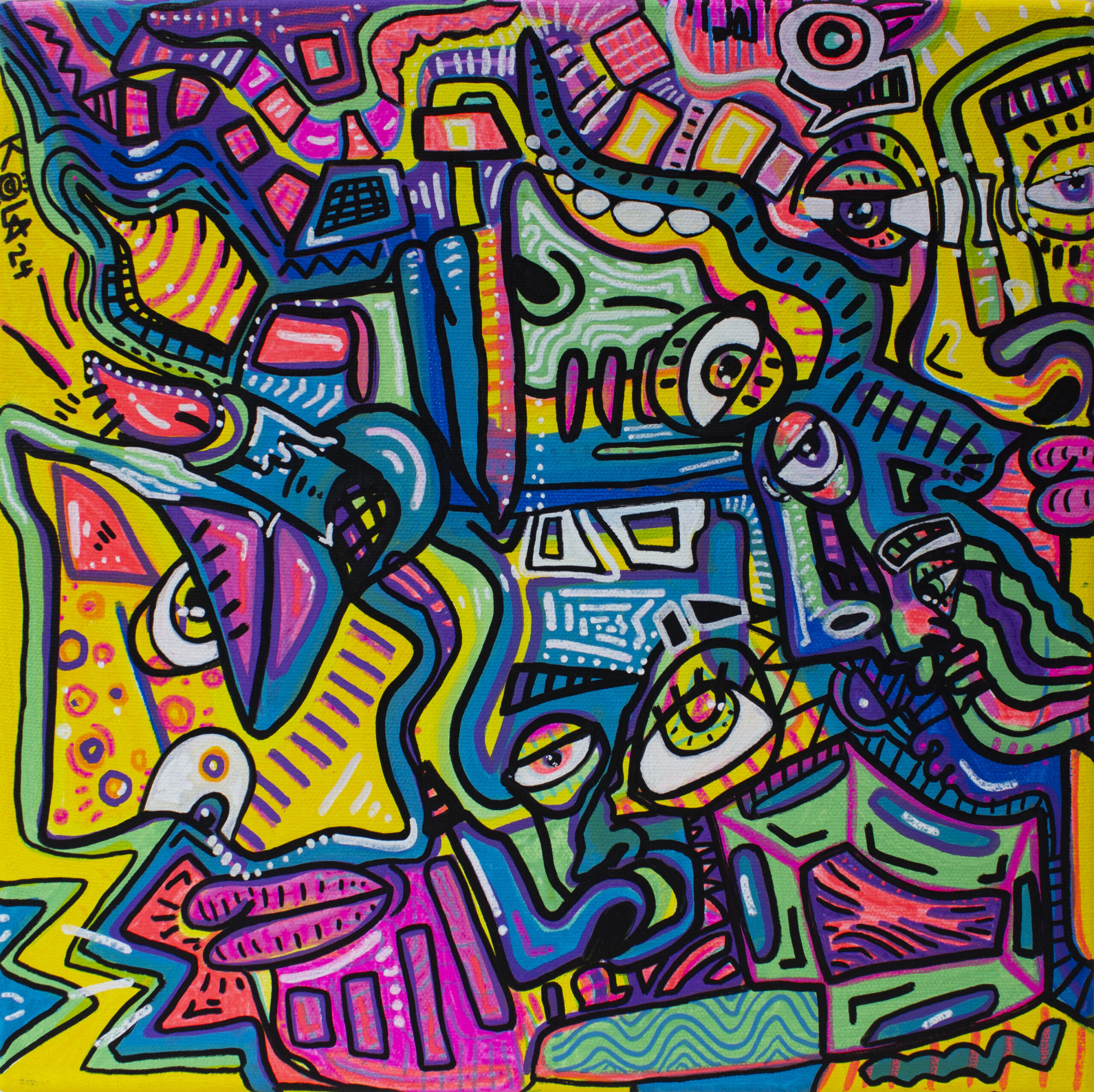Kyla is a Toronto-based, New Orleans–born visual artist whose vivid, layered paintings translate the inner tempo of a neurodivergent mind onto canvas. Calling her style ‘Intuitive ADHD Art’, she paints as fast as her thoughts move: turning hyperfocus, pattern, and repetition into a form of self-regulation. Her maximalist compositions blend cubism, abstraction, and psychedeliс art, inviting viewers to see emotion as movement and chaos as clarity. For Kyla, ADHD is a creative engine: a way to transform the swirl of perception into artworks deeply personal and connective.